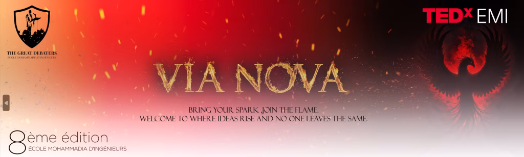 Organisé en tant qu’événement TED accrédité et porté par une équipe d’étudiants passionnés, TEDxEMI s’inscrit dans une dynamique qui encourage l’exploration de voies nouvelles. Après une précédente édition marquée par le thème MOMENTUM, VIA NOVA invite à aller plus loin : rompre avec la répétition, observer autrement, transformer l’inspiration en action et reconnaître que la réussite est avant tout une aventure collective.
